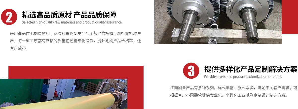 潛山江南刷業(yè)有限公司生產(chǎn)汽車(chē)噴涂鴕鳥(niǎo)毛毛刷,鋁板脫脂線輥刷,鋁板去氧化皮輥刷,淬火爐爐內(nèi)輥,無(wú)紡布擠油輥擠干輥,無(wú)紡布真空吸油輥,電加熱打孔針輥等,以及各類(lèi)涂油滾&膠輥&海綿滾&不織布輥、密封刷&鋼刷式密封、輸送帶刷式清掃器&牛體刷、鋼絲刷條&鋼絲板刷、PVC毛刷板&尼龍毛刷條、打孔鋁針輥&打孔銅針輥、圓形滾刷毛刷輥系列、圓形鋼刷&鋼絲刷輥、拋光毛刺磨料刷、試管刷&管道刷等各類(lèi)刷制品。江南刷業(yè)注重...